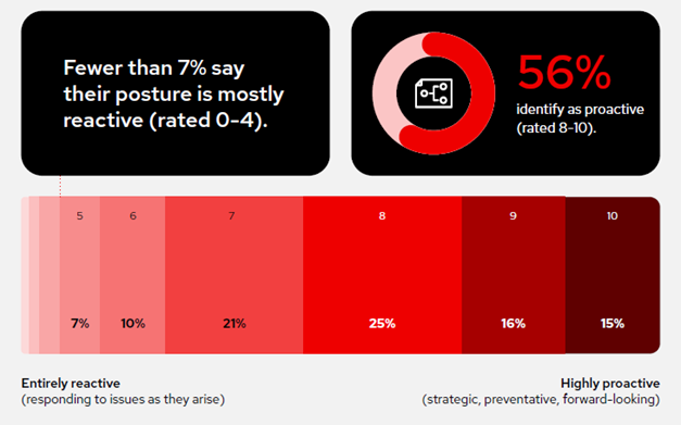 אחד הממצאים הבולטים בדוח הוא הפער בין האופן שבו ארגונים תופסים את המוכנות שלהם לבין האסטרטגיה שלהם בפועל. בעוד כי 56% מהארגונים מתארים את עמדת האבטחה היומיומית שלהם כ"פרואקטיבית מאוד", רק 39% מחזיקים באסטרטגיית אבטחת ענן בשלה ומוגדרת היטב. ממצא זה מרמז כי בעוד שצוותים שואפים להיערך לעתיד, רבים מהם "מאלתרים". למעשה, כ-22% מהארגוניםפועלים ללא אסטרטגיה מוגדרת כלל.